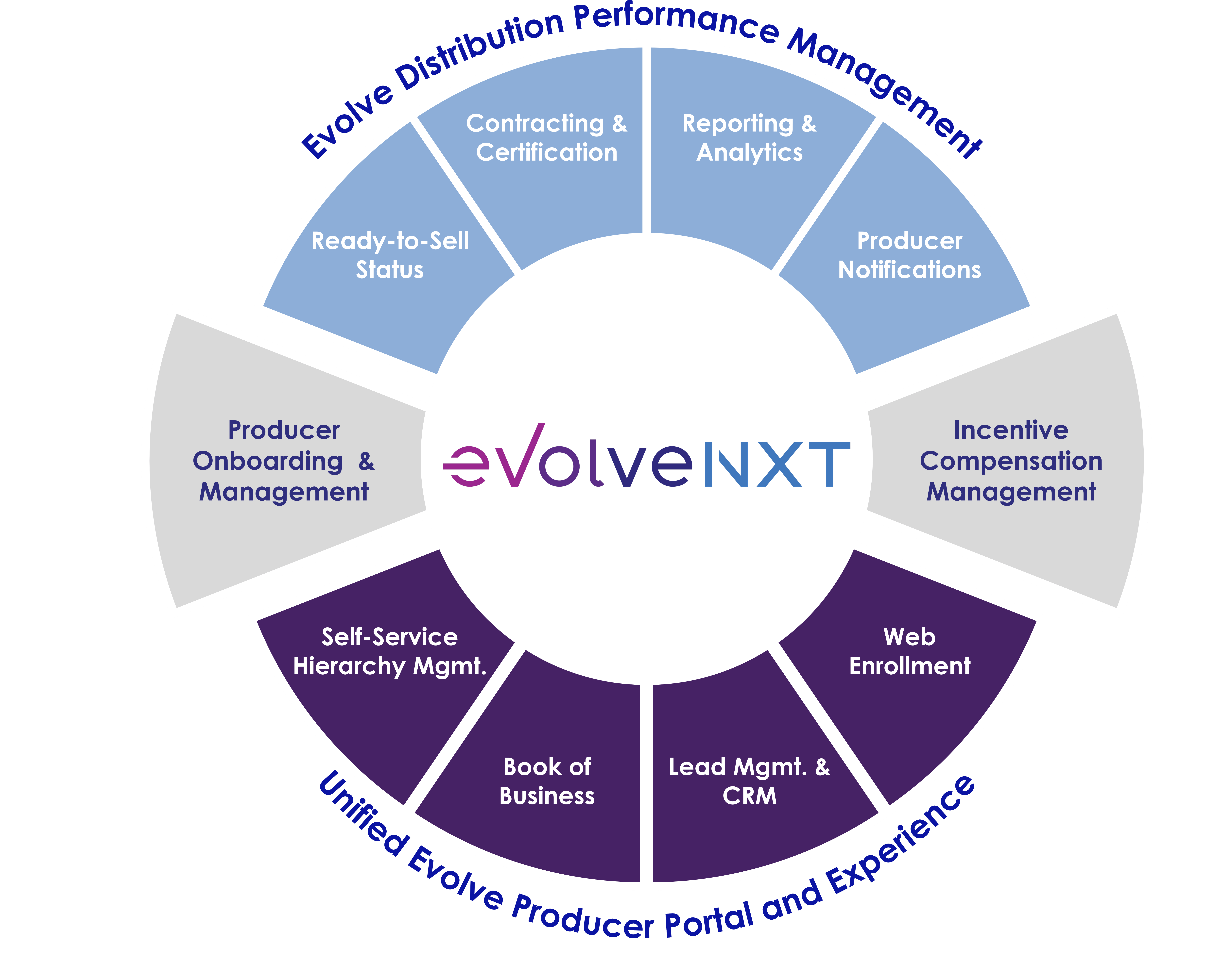 Evolve DPM is a complete, modular, end-to-end distribution management platform, combining carrier-grade functionality with a broad range of producer-facing capabilities. With unmatched breadth and depth across the distribution lifecycle, Evolve delivers more functional coverage than any other solution in the market.
